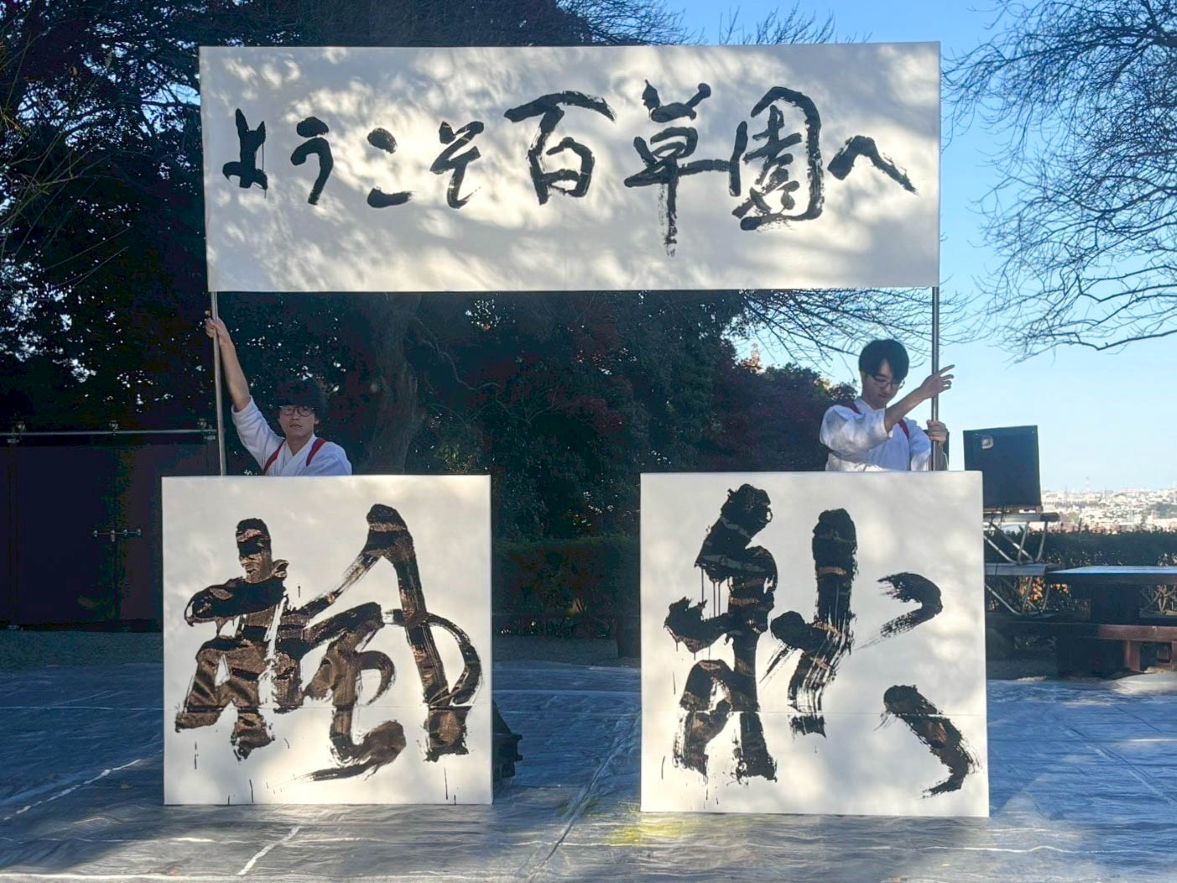 2025年11月22日(土)、帝京大学書道部が京王百草園(東京都日野市)の紅葉まつりにて書道パフォーマンスを披露しました。京王百草園は江戸時代から続く歴史ある日本庭園で、年間を通して多くの来園者が訪れる日野市を代表する名所です。