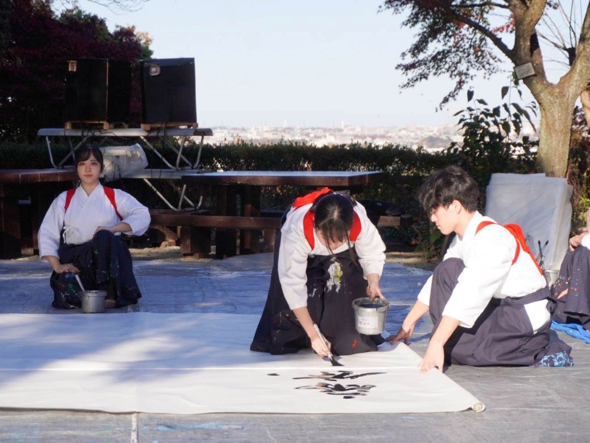 書道部が京王百草園の紅葉まつりで書道パフォーマンスを披露しました
